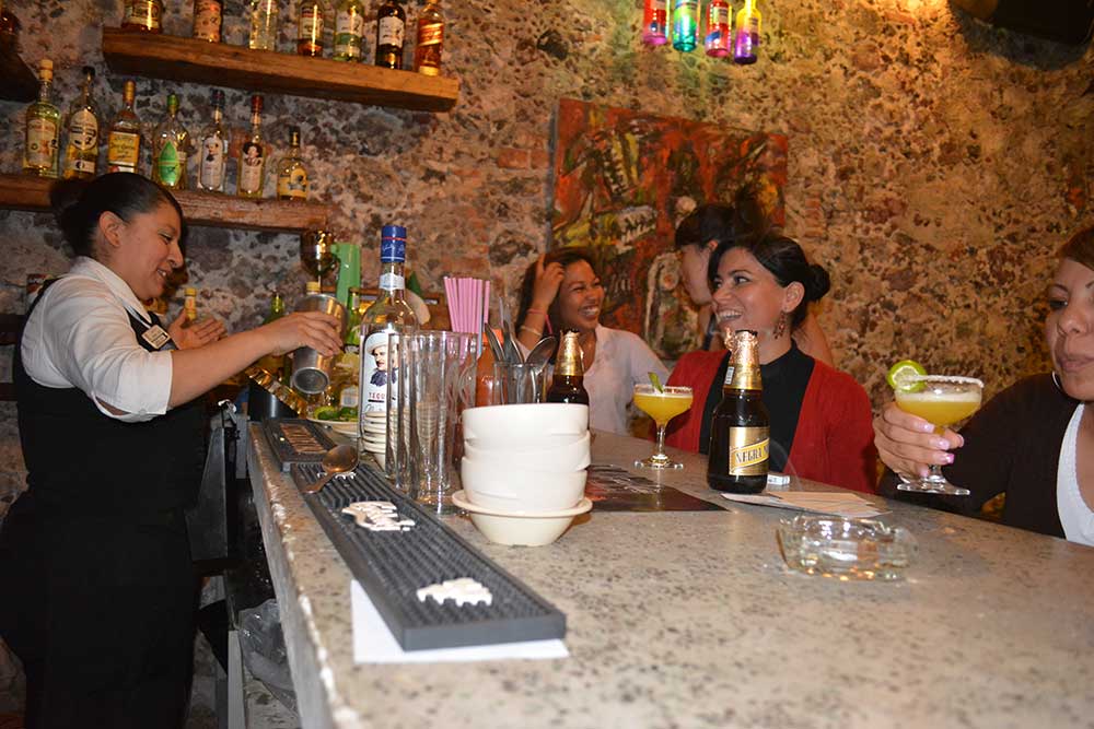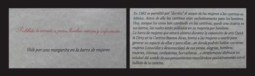 Registro de la acción “Prohibida la entrada a perros, hombres, menores y uniformados”, en la que se instaló un bar temporal sólo para mujeres en una cantina tradicional en el centro de la Ciudad de México.